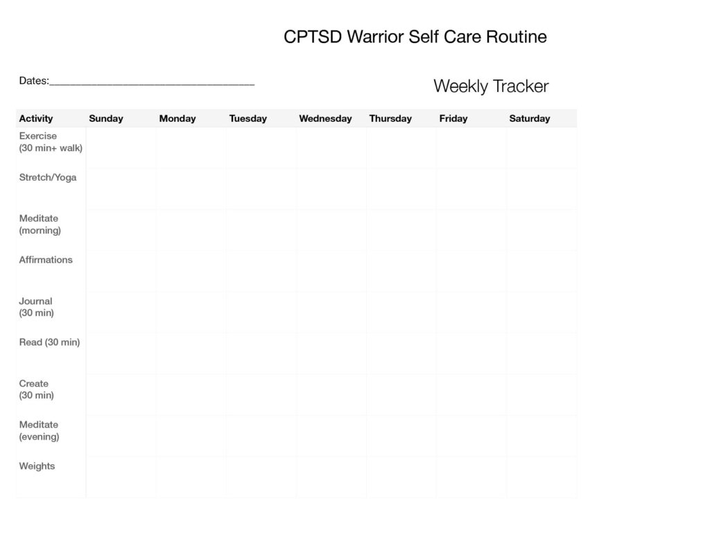 As promised I am providing you with a downloadable copy of the CPTSD Warrior Self Care Routine.
